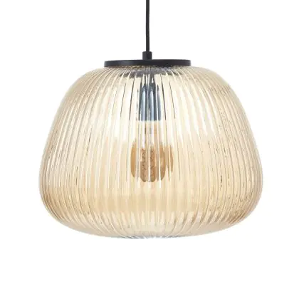 Beschrijving Brilliant Kaizen Hanglamp Glas Hanglamp Metaal Zwart Beige | 350mm - Geschikt voor 1x E27