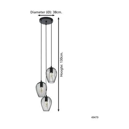 Beschrijving Eglo Hanglamp Newtown Staal Zwart | IP20 - Geschikt voor 3x E27