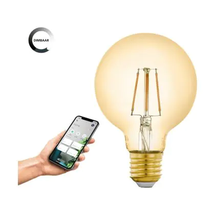 Beschrijving Eglo LED E27 Globe Amber Filament 4.9W 500lm - 822 Zeer Warm Wit | Zigbee Dimbaar- Vervangt 40W