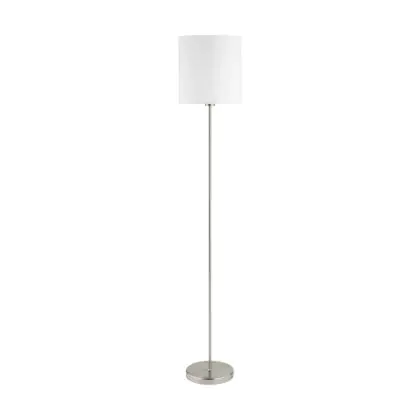 Beschrijving Eglo Vloerlamp Pasteri Staal Satijn Nikkel Wit | IP20 - Geschikt voor 1x E27