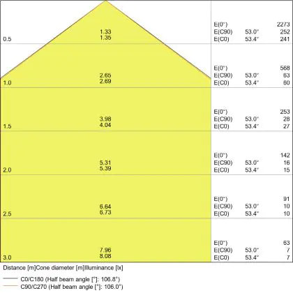 De gradenbundel geeft informatie over hoe breed het licht wordt uitgestraald. Dit zit tussen de 0 en 360 graden (D). Hoe kleiner de hoek, hoe specifieker de lichtbundel is. Over het algemeen is een smalle gradenbundel perfect voor sfeer- of accentverlichting, terwijl een brede gradenbundel ideaal is om grote oppervlaktes te verlichten.