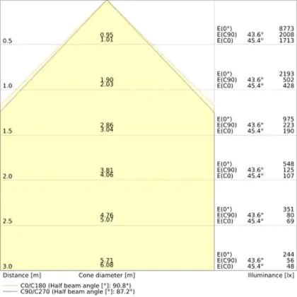 De lichtopbrengst (Lumen), geeft weer hoe krachtig het uitgestraalde licht is. Dit is belangrijk om te weten om de juiste sfeer te creëren. 0 tot 400 Lumen is bij uitstek geschikt voor accent- of sfeerverlichting. Een hoger aantal Lumen is, afhankelijk van de grootte van de ruimte, beter geschikt als ondersteunende- of basisverlichting. Heb je plafonds hoger dan 4 meter, dan is een lichtopbrengst van minimaal 8000lm aan te raden indien heldere verliching gewenst is (vb. in werkomgevingen).