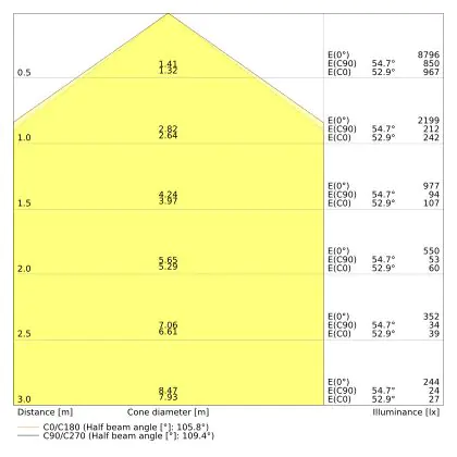 ![]() De kleurcode is een combinatie van de kleurweergave (CRI) en lichtkleur (Kelvin). Het eerste getal is de kleurweergave (1 = zeer slechte kleurweergave, 9 = maximale kleurechtheid). Het tweede en derde cijfer betreft de lichtkleur. Een lamp met kleurcode 830 heeft bijvoorbeeld een goede kleurweergave en straalt een warm wit licht uit (3000K), waar een lamp met de kleurcode 940 een uitstekende CRI heeft en een koel wit licht (4000K) uitstraalt. |