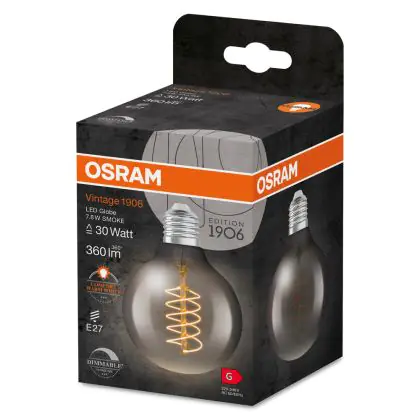 Beschrijving Ledvance Vintage 1906 LED E27 Globe Smoke 7.8W 360lm - 818 Zeer Warm Wit | Dimbaar - Vervangt 30W