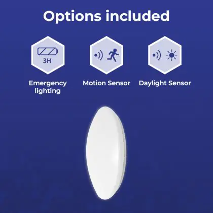 Beschrijving Noxion LED Bulkhead Corido V2 Wit 12/16/20W 2000lm 830-840-865 CCT | IP44 - Bewegings- en Lichtsensor - Nood 3H