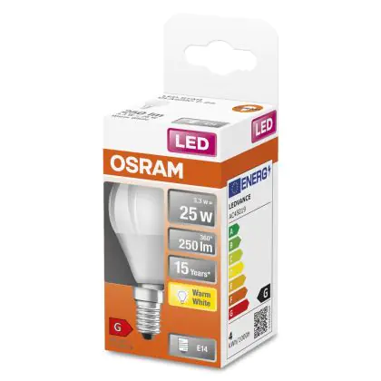 Beschrijving Osram LED Star Classic E14 Kogel Mat 3.3W 250lm - 827 Zeer Warm Wit | Vervangt 25W